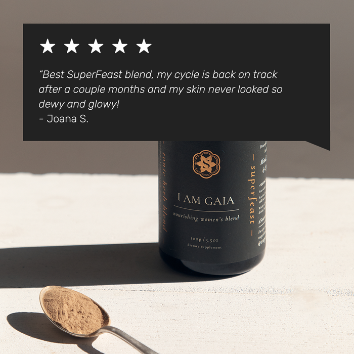 I Am Gaia is SuperFeast’s passionate response to an industry that deprioritises, underfunds, and rarely researches this aspect of women’s health, and a means for women to rediscover just how freeing and empowering it can be to bring it into balance.
